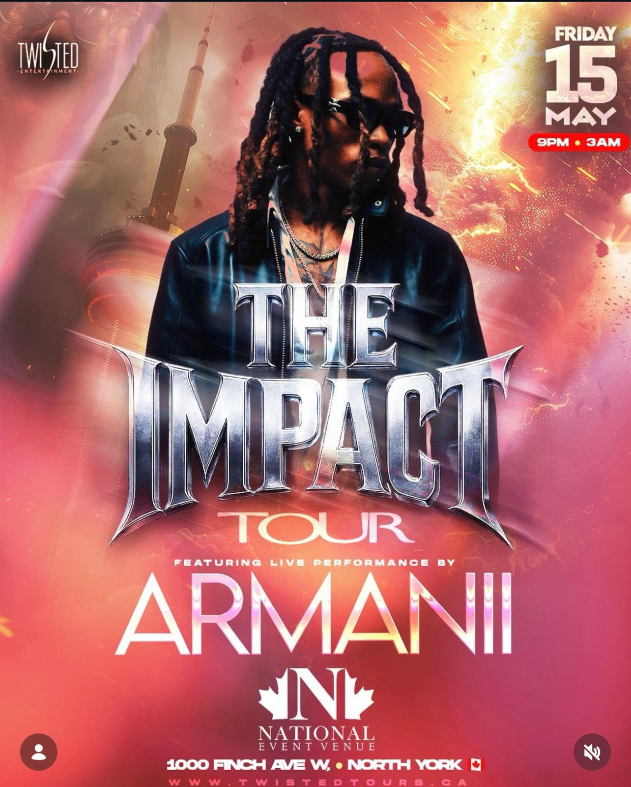 Twisted Entertainment proudly presents The Impact Tour, featuring an explosive live performance by Armanii.